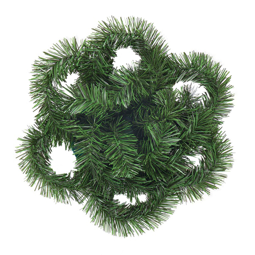 Veľký plastový veniec so smrekovou čečinou a dvomi rúčkami.