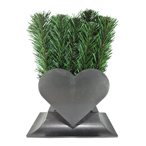 Srdiečko v ktorom je betónom zaliatá umelá smreková čečina.